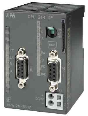 Part Number: VIPA 214-2BP02 Description: CPU 214, with PROFIBUS DP slave interface 96kByte Memory, Intern. Flash EPROM MMC-Slot. Clock 144K Load Memory No MMC required Datablocks - 2047 Function Blocks - 1024 Function Charts - 1024 Scan Time Bit - 0.18micro sec S7 Counters - 256 S7 Timers - 256 IEC Timers - Yes Flags - 8192 bits I/O address - 1kByte / 1kByte Process image - 128 Bytes Modules per line - 32 Modules total (local) - 32 MPI Port DP Port - optional IM208 Programmable with STEP®7 from Siemens