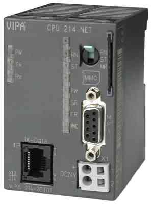 Part Number: VIPA 215-2BT02 Description: CPU 215, with H1 and TCP/IP interface 96kByte Memory, Intern. Flash EPROM MMC-Slot. Clock 144K Load Memory No MMC required Datablocks - 2047 Function Blocks - 1024 Function Charts - 1024 Scan Time Bit - 0.18micro sec S7 Counters - 256 S7 Timers - 256 IEC Timers - Yes Flags - 8192 bits I/O address - 1kByte / 1kByte Process image - 128 Bytes Modules per line - 32 Modules total (local) - 32 MPI Port DP Port - optional IM208 TCP / H1 port - 10/100Mb/s TCP Throughput - ~40Mb/s (Siemens S7-300 with CP 343-1 TCP throughput to CPU is only 187.5 kb/s due to backplane bus maximum speed) Programmable with STEP®7 from Siemens