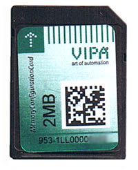 Part Number: VIPA 953-0KX10 Description: Micro Memory Card formated for the VIPA S7 CPU's. Firmware MMC Comes pre –loaded with the latest firmware for your CPU. Comes also pre-loaded with the latest firmware for your DP Master Just complete a master reset, plug in the supplied MMC turn power on and the firmware will be automatically upgraded. PLEASE SUPPLY YOUR CPU PART NUMBER, VERSION NUMBER, and EXISTING FIRMWARE VERSION WITH YOUR ORDER.