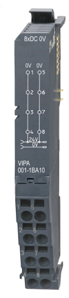 Part Number: VIPA 001-1BA10 Description: CM 001 - Potential distributor terminal module 8xDC 0V clamps Terminal modules are passive modules for 2- or 3-wire installations, whose contacts are vertically electrically connected internally. Within the module the backplane bus feeds-through. The module does not have any module identification, but is considered at the maximum number of the modules. Through the application of the terminal modules, marshalling terminals external to the rack can be replaced and devices like proximity switchs and sensors can be directly wired to the SLIO to connect directly the 24VDC, 0VDC and input / output wire. The wiring is done via timesaving and secure cage clamp technique. The terminal modules are fixed on the mounting surface by means of a 35mm DIN rail. Features + Maintenance-free cage clamp technique + Backplane bus feed-through + Max. terminal voltage 10A + Potential separation 500Veff (field voltage to bus) + Mounting on a 35mm DIN rail